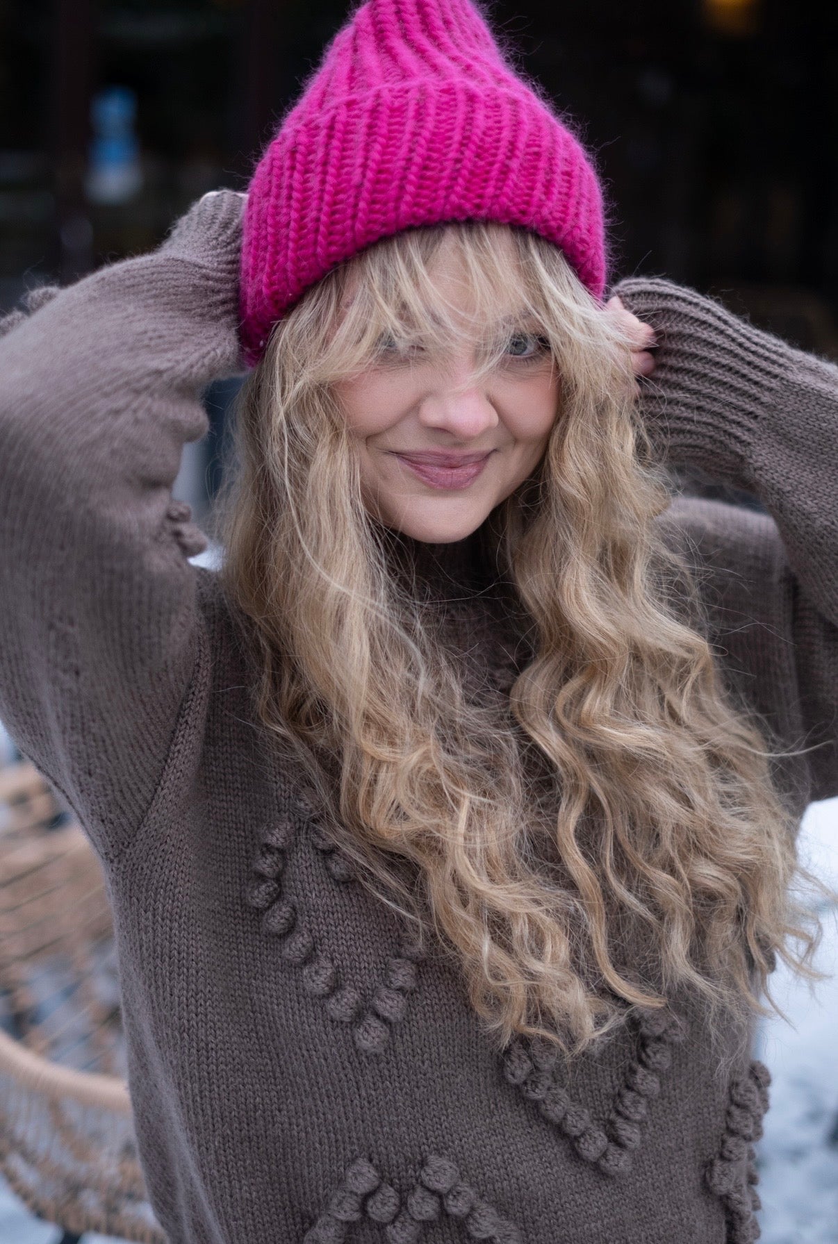 Do kompletu dobierasz pełne rękawiczki — z ozdobnym warkoczem lub w wersji gładkiej. Obie są równie piękne: subtelne, ciepłe i stworzone tak, by Twój zimowy look był spójny i wyjątkowy.