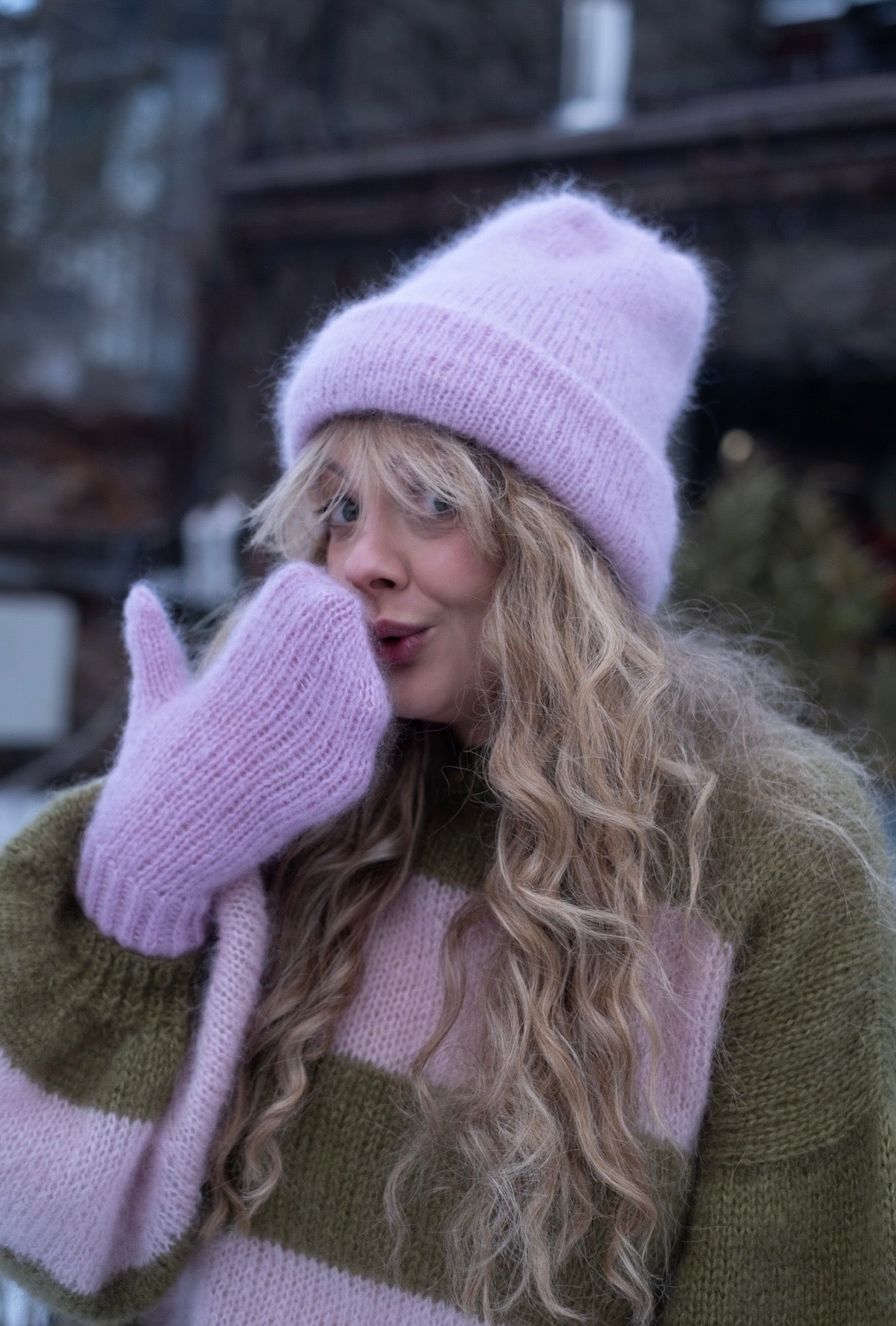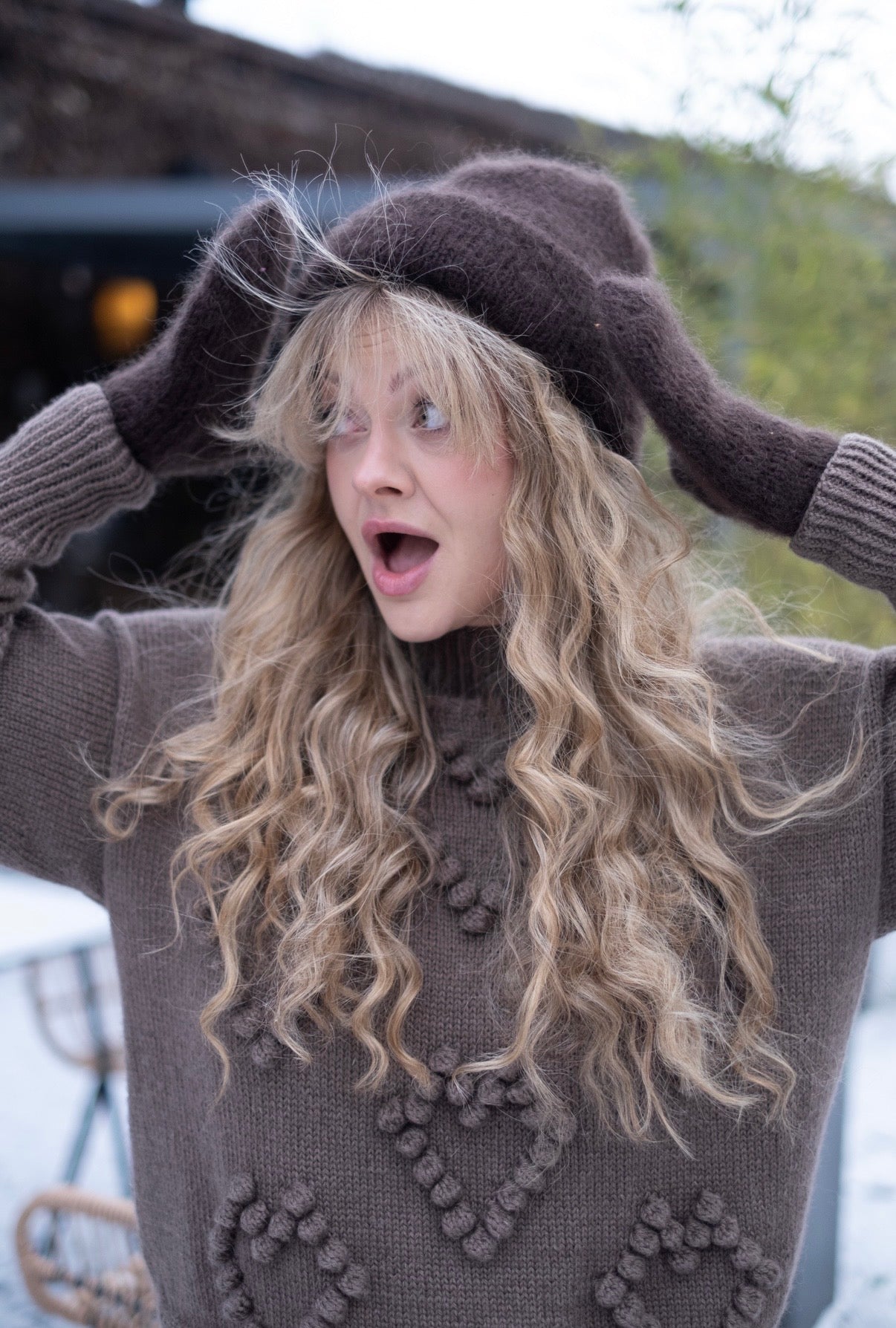 Skład czapki Inka: 61% super kid moher, 24% jedwab i 15% merino — połączenie, które daje lekkość, miękkość i ciepło w najbardziej szlachetnym wydaniu.